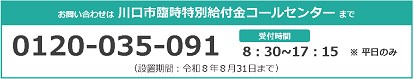 給付金に関するお問い合わせは下記の電話番号までお願いいたします。